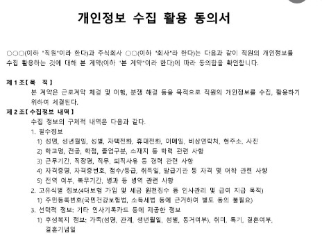 개인정보 열람을 위한 동의서로 서명 해줘야하는것이 맞습니다.