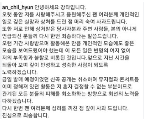 당시 강타는 만취한 이지훈의 여자친구를 집에 데려다주기만 했다고 해명했는데요. 다행이 오해는 풀어져 두 사람은 더욱 돈독해지는 계기가 되었지만 두사람은 여자 및 술문제에 대한 끊임없는 과거사를 막아내야 했습니다.
