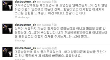 이에 대해 심은경은 SNS에 “대종상영화제 후보에 올려주셨었는데 학교 일정 때문에 참석 못한다고 하니 명단에서 제 이름이 빠졌네요” 라며 씁쓸하다면서 자신이 후보에 올려달라는 것도 아니었는데 왜 올려놓고 이렇게 상처를 주시는지 라며 본인의 심정에 대한 글을 올렸는데요.