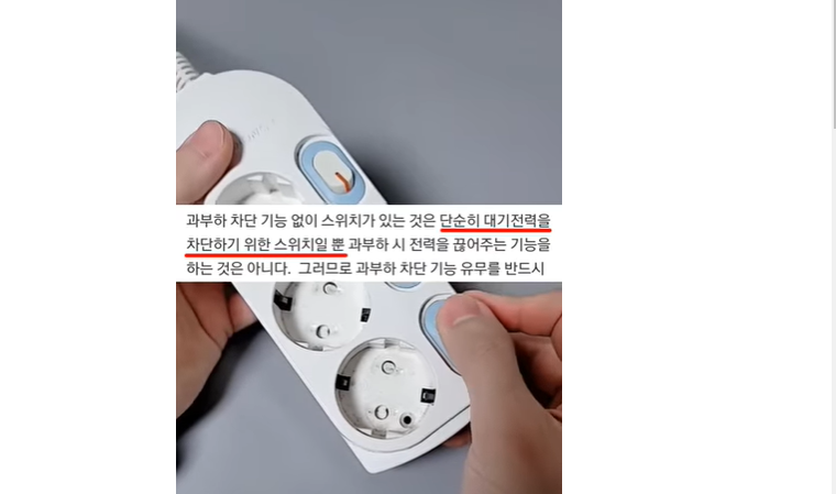 이건 단순히 대기전력차단 만 하는 스위치라서 과부하 기능하고 는 완전 별개라고하는데 애초에 멀티탭 살 때 과부하 차단 기능이 표시되어진 걸 사야 한다고 합니다.