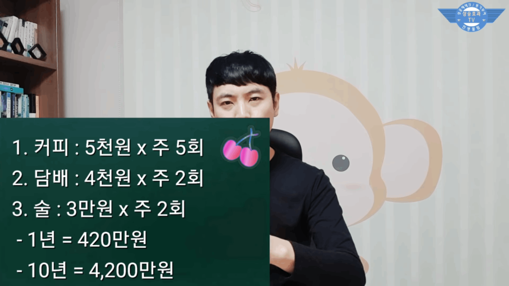 커피와 담배 술을 할 경우 1년이면 420만원, 10년이면 4200만원을 소비하는 꼴이 됩니다. 커피는 사무실에서 술대신 운동을 하시거나 재테크 공부를 하시길 바랍니다. 담배는 무조건 금연을 하시는 것을 추천드립니다. 밥을 먹을 때도 비싼 밥을 먹기 보다는 도시락을 싸 드시거나 싼 음식을 먹고 배달 시키는 것을 자제하시길 바랍니다.
