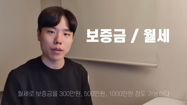 첫번째는 보증금과 월세를 정하셔야 합니다. 전세로 들어갈건지 월세로 들어갈건지를 정하신 다음 대략적인 금액을 정하시는건데요. 월세로 보증금을 300, 500, 1000만원 월세로 한달에 30, 40, 60만원 까지 낼 수 있다 등을 정하는 것입니다.