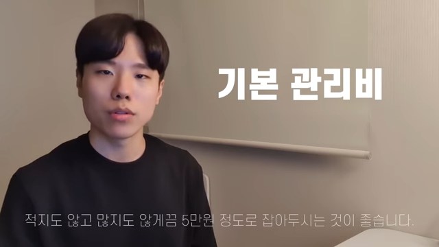 그 다음 고려해야 할 것이 바로 기본 관리비입니다. 기본 관리비는 원룸이 있는 건물을 좋은 상태로 유지하기 위해 드는 비용이라고 생각하시면 되는데요.