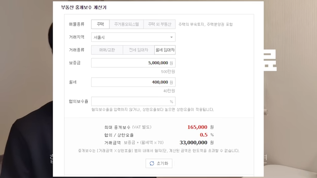 다음으로 생각해봐야 할 것이 바로 중개 수수료인데요. 중개 수수료는 내가 들어가고자 하는 원룸의 대략적인 임대료를 기준으로 계산을 해보실 수 있습니다. 네이버에 중개 수수료 계산기를 이용하시면 간편하게 계산이 가능한데요.