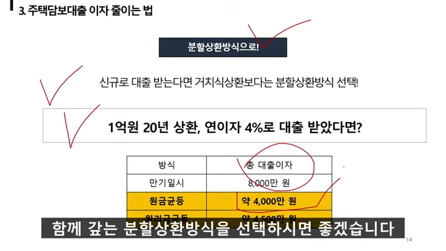 분할 상한방식이 거치식 상한 보다 이자를 거의 절반이나 줄이실 수 있기 때문에 생활비 여유가 된다면 되도록이면 분할 상환방식으로 대출을 받으시길 바랍니다.