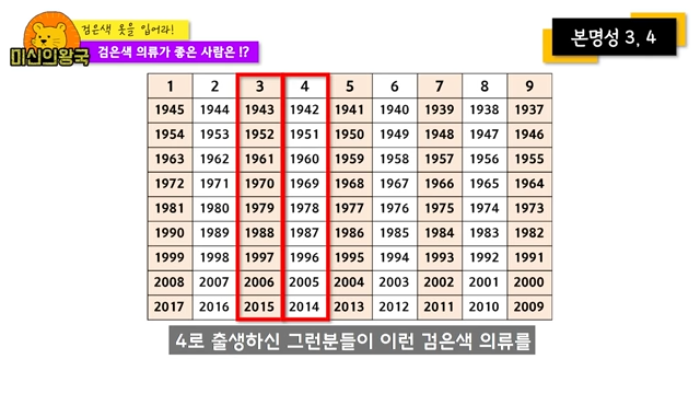본명성이 3,4 이신 분들도 검은색 의류를 입으시면 운수가 좋아집니다. 본명성은 띠처럼 태어날 때 부여받는 것을 의미합니다.