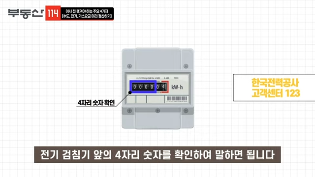 전기요금은 한전(123)으로 전화하여 해지를 한 뒤 전기 검침기 앞의 4자리 숫자를 확인하여 말을 하시면 됩니다. 단 아파트 관리비에 포함되어 있는 경우 관리사무소로 문의하셔야 합니다.