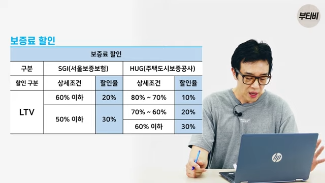 그리고 HUG 와 SGI의 경우 LTV(loan to value ratio – 주택의 담보가치에 따른 대출금의 비율) 구간 별 보증료 할인이 있습니다. 보증료 할인은 위 표를 참고하시길 바랍니다.