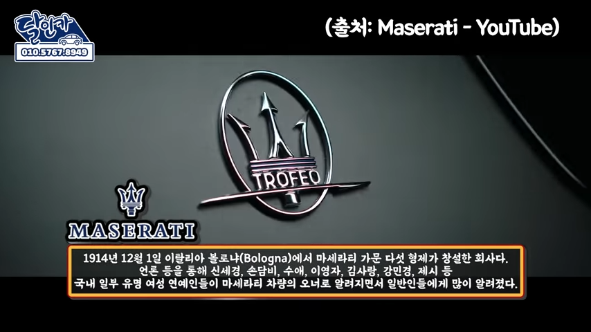 마세라티의 상징인 일명 삼지창 마크가 굉장히 멋있습니다. 하지만 차량의 서스펜션(자동차의 구조장치로서 노면의 충격이 차체나 탑승자에게 전달되지 않게 충격을 흡수하는 장치.)이 기대와 달리 확실히 차이가 난다고 합니다. 또한 연비도 굉장히 좋지 않아 유지비가 많이 든다는 단점도 있습니다. 잔고장은 없지만 부품 하나가 고장이 나면 일반 수입 전문 수리점에서 수리를 할 수 없다고 합니다.