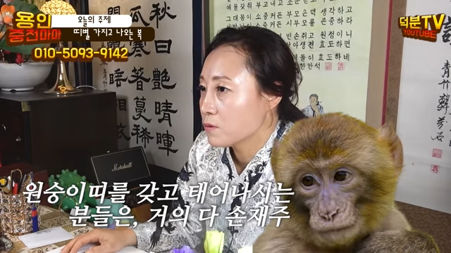다음은 원숭이띠입니다. 원숭이띠를 갖고 태어나신 분들은 거의 재주로 먹고산다고 하는데요. 손재주, 말재주 등이 상당히 뛰어나신 분들이 많다 보니 미용하시는 분들 중에 원숭이띠가 많다고 합니다.