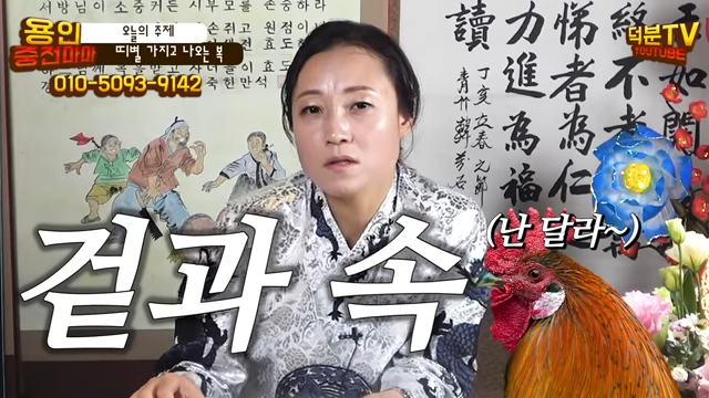 다음은 닭띠입니다. 닭띠를 갖고 태어나신 분들은 겉과 속이 다르다고 하는데요. 겉과 속이 다르고 고집이 너무 세서 한 우물 파기에는 좋지만 흔히 말하는 똥고집이 강하다고 합니다. 하지만 한 우물만 파는 그런 기운 덕에 성공 기운이 강하다는 장점이 있습니다.