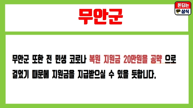 다음은 무안군입니다. 무안군 또한 전 민생 코로나 복원 지원금 20만원을 공약으로 걸었기 때문에 지원금을 지급 받으실 수 있을 듯합니다.