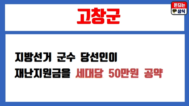 다음은 고창군입니다. 지방선거 군수 당선인이 재난지원금을 세대당 50만원 공약을 했습니다.