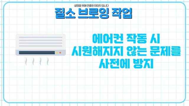 다음으로 확인해야 할 비용은 질소브로잉 비용입니다. 질소브로잉은 에어컨 작동 시 시원해지지 않는 문제를 사전에 방지할 수 있어서 꼭 필요합니다. 에어컨 배관에 스펀지를 넣은 뒤 질소를 불어넣어 냉매나 이물질을 청소하는 방법입니다. 비용은 일반적으로 5~15만원까지 발생합니다. 공식 서비스 센터에서 이것을 받지 않으면 품질 보증을 해주지 않을 만큼 중요한 작업입니다.