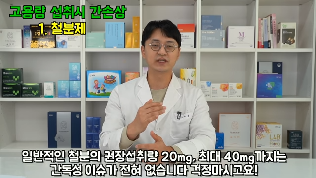 1. 철분제입니다. 철분제도 명백히 간 독성을 일으키는 것으로 분류되어 있습니다. 하지만 일반적인 철분의 권장 섭취량 20mg, 최대 40mg까지는 간 독성 문제가 전혀 없으니 너무 걱정하지 않으셔도 됩니다. 또한 일반적으로 성인에게서 문제가 발생된 건은 거의 없고 성인 철분제를 만 5세 이하의 아이가 잘못 먹고 발생한 부작용이 대부분입니다.