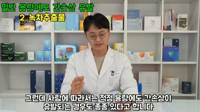 2. 녹차추출물입니다. 녹차는 일반적으로 간에 좋고 황산화 성분이 많기 때문에 피부, 다이어트에도 좋습니다. 녹차는 보통 1회에 녹차추출물 1600mg 최대 9000mg까지 안전하다는 데이터가 있습니다. 녹차 20컵 정도의 양입니다. 적정량을 먹어도 간 독성을 유발한다는 보고가 꽤 있습니다. 따라서 녹차, 녹차추출물을 드실 때 주의할 필요가 있습니다.