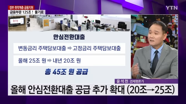 7%가 넘는 고금리 대출은 저금리 대출로 대환을 할 수 있도록 해준다고도 하였습니다. 그밖에도 변동금리 주택담보대출을 고정금리 대출로 전환하는 안심전환 대출 공급을 추가 확대한다고 발표하였습니다.