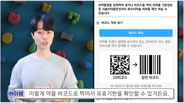 내가 먹는 약 한눈에 서비스 밑을 보면 약! 찍어보는 안심정보에서는 예전에 받아 두신 약 유효기간을 확인 할 수 있습니다. 과거 언제 처방 받은 지도 모르는 약을 가끔 드시려고 하는데 위험할 수 있습니다. 과거에 받은 바코드로 찍어보게 되면 유효기간 약 성분 등 자세하게 처방 받은 약에 대해서 알 수 있으니 이것도 참고하면 좋습니다.