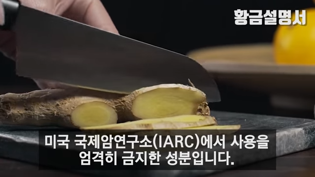 첫번째 생강은 차로도 많이 끓여 마시고 김치를 담글 때도 기본적으로 많이들 이용합니다. 이러한 생강이 썩게 되면 아주 강력한 독성이 생기게 됩니다 아플라톡신과 사프롤이라는 무서운 독성이 생기게 되는데 이는 미국식품의약국과 미국 국제암연구소에서 사용을 엄격히 금지한 성분입니다.