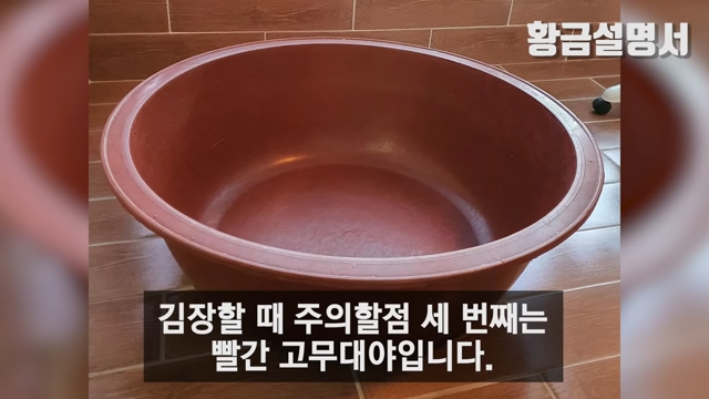 세번째 빨간 고무대야 입니다. 김장할 때 항상 사용되는 도구중 하나가 빨간색 고무대야입니다. 그러나 빨간색 고무대야는 보통 재활용 원료로 만들어지기 때문에 깍두기나 김치를 버무릴 때 납이나 카드뮴 같은 중금속이 포함되었을 수도 있습니다.
