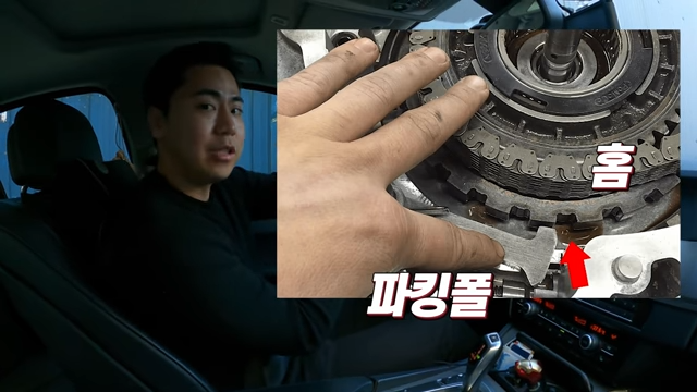 기어에 있는 홈에 파킹폴이 걸리면서 P단이 체결되는 겁니다. 잘못된 방법으로 할 경우 차의 하중이 사이드브레이크가 아닌 P단 톱니바퀴에서 전부 받게 됩니다.