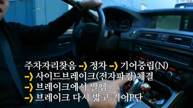 기존에 주차자리를 찾고 주차를 완료하고 기어를 p단에 변속하고 사이드브레이크를 체결하는 방법은 잘못된 방법입니다. 오르막길 또는 내리막길의 경우 기어에 정말 안 좋습니다.