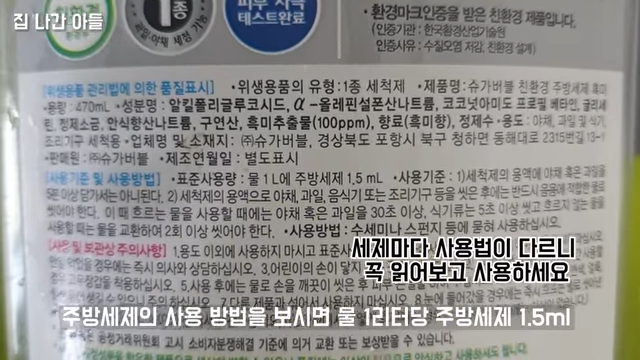 또한 주방세제는 1종, 2종, 3종으로 나뉘게 되는데요. 1종은 채소, 과일, 식기 를 씼을 수 있고 2종은 식기류만 3종은 주방기기 및 식품 가공 기구에 사용됩니다. 주방 세제의 경우 웬만하면 1종 및 2종을 사용하시는 것이 좋습니다.