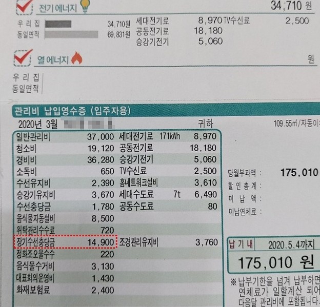 장기수선충당금은 이사를 갈 때 모두 돌려받을 수 있는데요. 예를 들면 매달 관리비에 장기수선충당금이 3만원씩 나온다면 2년 뒤 이사를 갈 때 총 72만원을 환급받으실 수 있습니다.