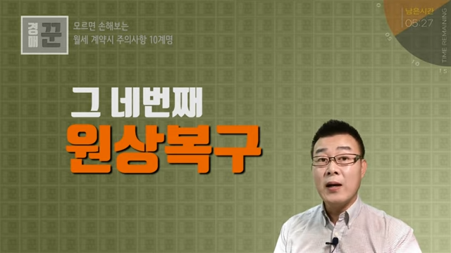 네번째 원상복구에 관련되서 특별히 꼼꼼하게 살펴보고 작성을 하셔야 합니다. 안점함을 위해서 입주를 할 때 그전에 꼼꼼하게 살펴보시고 입주를 할 때에는 꼭 이상하거나 흠집 지저분한 경우에는 꼭 미리 사진을 찍어 놓으시길 바라겠습니다.