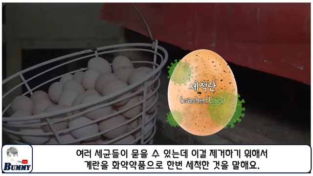 기본적으로 계란 표면에 닭똥과 이물질 그리고 식중독을 일으키는 살모넬라균을 포함한 여러 세균들이 묻을 수 있는데 이걸 제거하기 위해서 계란을 화약약품으로 한번 세척한 것을 말합니다. 하지만 계란을 세척하게 되면 계란 표면에 있는 큐티클이라고 하는 천연 보호막이 함께 제거가 되기 때문에 이 큐티클은 계란이 감염되거나 내부 변질을 막는 역활이지만 세척을 하면 이 큐티클까지도 다 제거되기 때문에 계란의 신선도가 떨어지거나 더 쉽게 상할 수 있어서 세척란으로 판매되는 계란들은 반드시 냉장보관을 해야 됩니다.