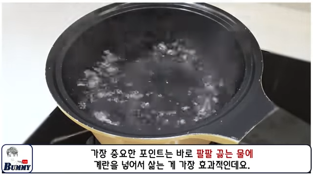 가장 중요한 포인트는 바로 팔팔 끓는 물에 계란을 넣어서 삶는게 가장 효과적입니다. 끓는 물에 계란을 넣으면 순식간에 계란 내에 단백질이 응집되면서 바깥쪽 계란 막과 멀어져 껍질과의 분리가 잘 되지만 찬물에 넣고 천천히 끓이게 되면 바깥쪽부터 단백질이 응집되면서 계란 막이 먼저 붙어버리기 때문에 껍질이 잘 벗겨지지 않는 원리입니다.