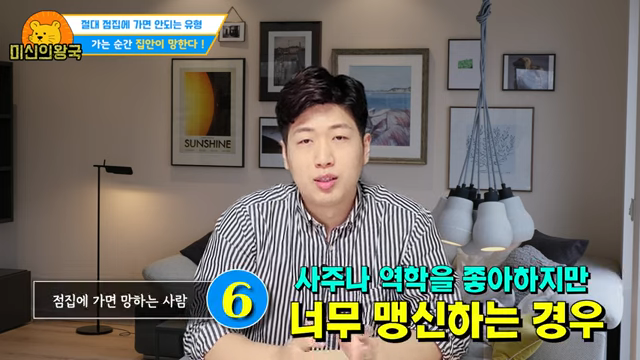 사주나 역학을 좋아하지만 너무 맹신하는 경우 사주나 역학을 좋아하는 것을 넘어 너무 맹신하는 사람은 가지 않는 것이 좋습니다.