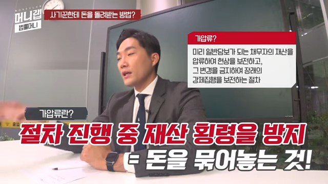 즉 민사소송 승소 후 돈을 받을 권리가 있다는 것을 판결문을 통해 공식적으로 확인 받아야하며 판결문을 통해 강제 집행을 신청하여 상대방 재산 중 받아야 될 돈을 돌려 받을 수 있습니다. 사기 꾼이 돈이 없을 경우 또는 미리 재산을 빼돌리는 경우에는 가압류가 진행되어야 합니다.