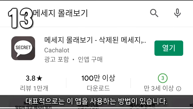 13. 삭제된 메세지를 보는 방법은 여러 가지가 있는데 메세지 몰래 보기 앱을 사용하는 방법이 있습니다. (아이폰은 이용이 불가능합니다.)