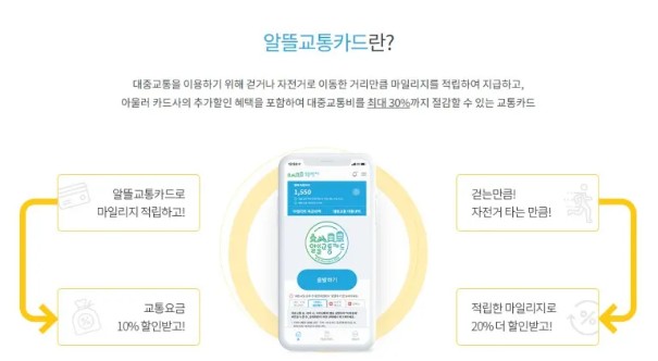 알뜰교통카드란 버스나 지하철을 타기 위해서 걷기만 하면 이동한 거리를 마일리지로 적립해서 교통비 최대 30%까지 할인해주는 교통카드입니다. 본인은 할인도 많이 안되는 것 같은데 더운 날씨에 걸어 다니라고 생각 할 수 있으시겠지만 도착지점까지 800M만 걸으면 교통요금과 대상자에 따라서 적립과 혜택 금액이 합쳐지게 됩니다.