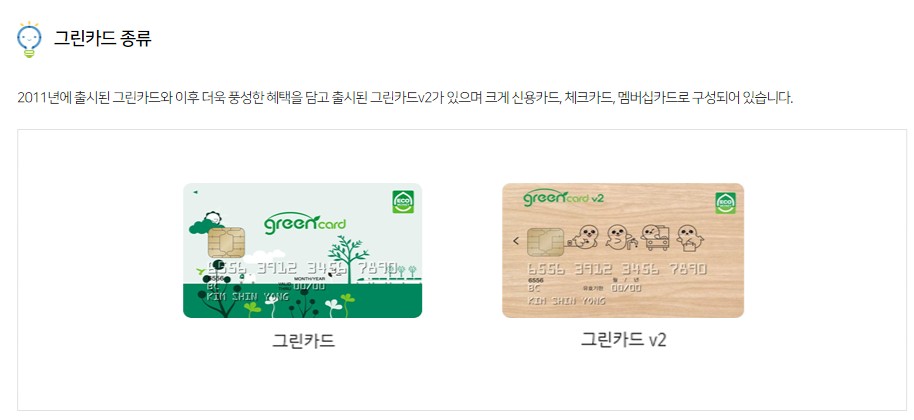 그린카드는 연회비가 없는 카드로 발급을 받은 다음 체육센터 및 공공시설에서 50%를 받을 수 있는 카드로 친환경 제품을 구입 할 경우 1회당 1000원이 적립되는 카드입니다.