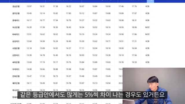 같은 등급안에서도 많게는 5%씩 차이나는 경우가 있습니다. 5%차이는 오백 만원을 한달만 사용한다고 하더라도 한달이자 차이가 이만원이 넘습니다.