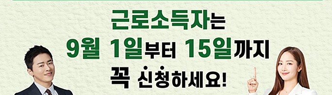 현재는 근로장려금 반기 신청기간이며 신청 기간은 9월 1일 부터 9월 15일 까지 2주동안 신청을 받습니다.