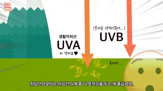 일상생활에서 자외선은 자외선 B보다는 자외선 A에 좀 더 포커싱을 두는 게 좋습니다.