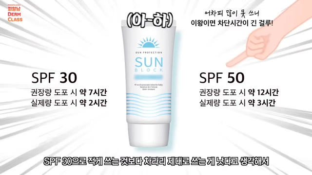 아무래도 차단 시간이 훨씬 더 길기 때문에 SPF 30으로 적게 쓰는 것보다 차라리 제대로 쓰는 것이 좋습니다.