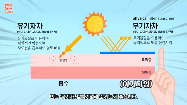 너무 민감하고 피부에 문제가 생기는 데 자외선 차단제를 사용할 때는 무조건 물리적 차단제 또는 무기자차를 기억해 주시는 게 좋습니다.