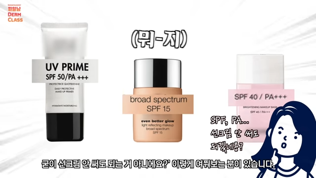 선크림과 관련하여 항상 얘기하는 것 중 하나가 메이크업 제품이나 다른 제품안에 자외선 차단 성분이 들어 있는 걸 발랐으니 굳이 썬크림 안 써도 되는 거 아닌가라고 생각할 수 있는데요.