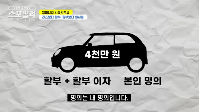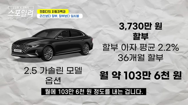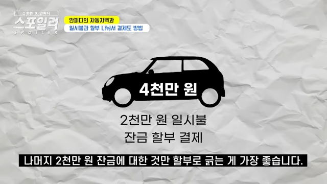 자동차 할부로 사는 분들이 많은데 가뜩이나 차 가격도 비싸 져서 일시불로 사기가 부담스러운 세상이 됐습니다.