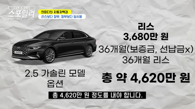 차를 3년에 한 번씩 무조건 바꿔야 하는 사람이면 괜찮지만 일반 소지자라면 3,680만원을 내고 나중에 중고로 판 다음에 그 금액에 조금 더 얹어서 새 차를 사는게 훨씬 좋습니다.