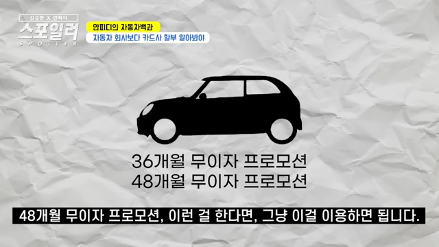 그런데 이런 경우는 별로 없습니다. 카드사도 월별로 조건이 있지만 자동차를 살 때 12개월 무이자 36개월 무이자 이런 혜택을 제공한다는 것입니다.
