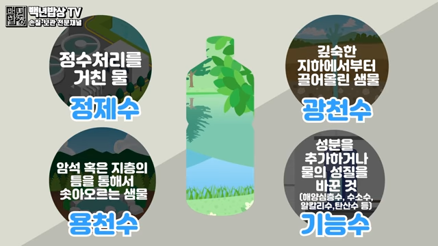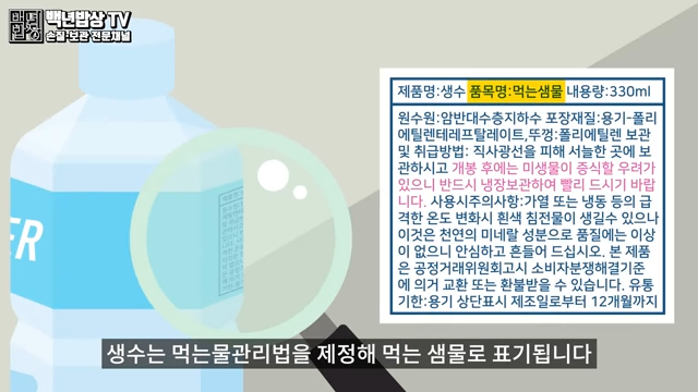 생수는 먹는물관리법을 제정해 먹는 샘물로 표기됩니다.