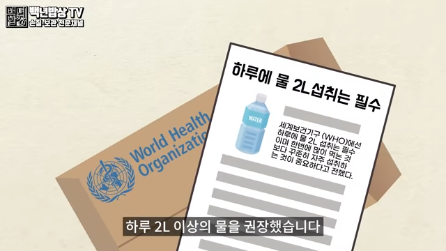 세계보건기구에서는 건강을 위해서 하루 2L 이상의 물을 권장했습니다.