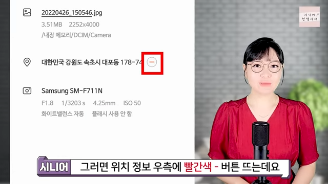 가장 상단에 이 사진을 촬영한 날짜와 시간이 뜨고 중간에 지도와 함께 어디에서 이 사진을 찍었는지 위치정보가 공개됩니다. 심지어 그 밑에 촬영한 휴대폰 기종까지도 뜹니다.