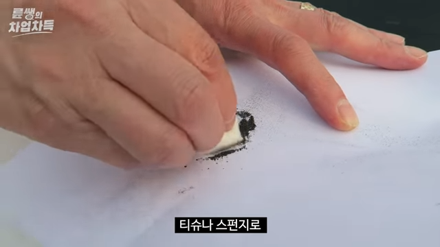 우선 연필을 깍아서 연필심 부분을 적당히 나오게 하고 연필심 부분을 종이에 대고 조금씩 갈아내서 가루를 내주고 적당히 모여진 연필심 가루를 티슈나 스펀지로 살짝 찍어 바르면 되는데요.