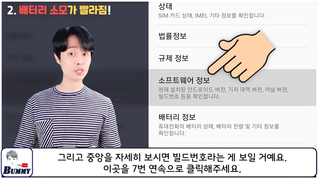 휴대폰의 설정 창으로 들어가 개발자옵션을 들어가시면 되는데 개발자 옵션이 없으신 분들은 휴대전화 정보 -> 소프트웨어 정보 -> 빌드 번호를 7번 연속으로 클릭해주시면 됩니다.
